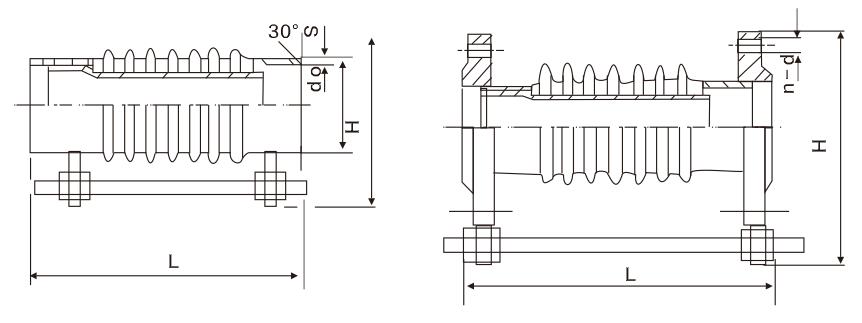 膨脹節(jié)由一個(gè)波紋管和兩個(gè)接管構(gòu)成,它通過波紋管的柔性變形來吸收軸向位移(也有少量的橫向、角向位移),有接管聯(lián)接和法蘭聯(lián)接兩種形式。膨脹節(jié)上的小拉桿主要是運(yùn)輸過程中的剛性支撐或作為產(chǎn)品預(yù)變形時(shí)調(diào)節(jié)尺寸用,不是承力件。該類膨脹節(jié)不能約束管道的壓力推力,壓力推力有兩側(cè)主固定管架承受。